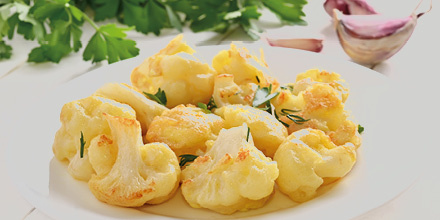 Per quanto riguarda la nutrizione, il cavolfiore è ricco di vitamina C e una buona fonte di folato., E ‘ senza grassi e colesterolo libero ed è anche a basso contenuto di sodio. Inoltre, il cavolfiore contiene solo 25 calorie in 1/6 di una testa media. Questa dimensione della porzione contiene anche 2 grammi di fibra alimentare e solo 5 grammi di carboidrati.